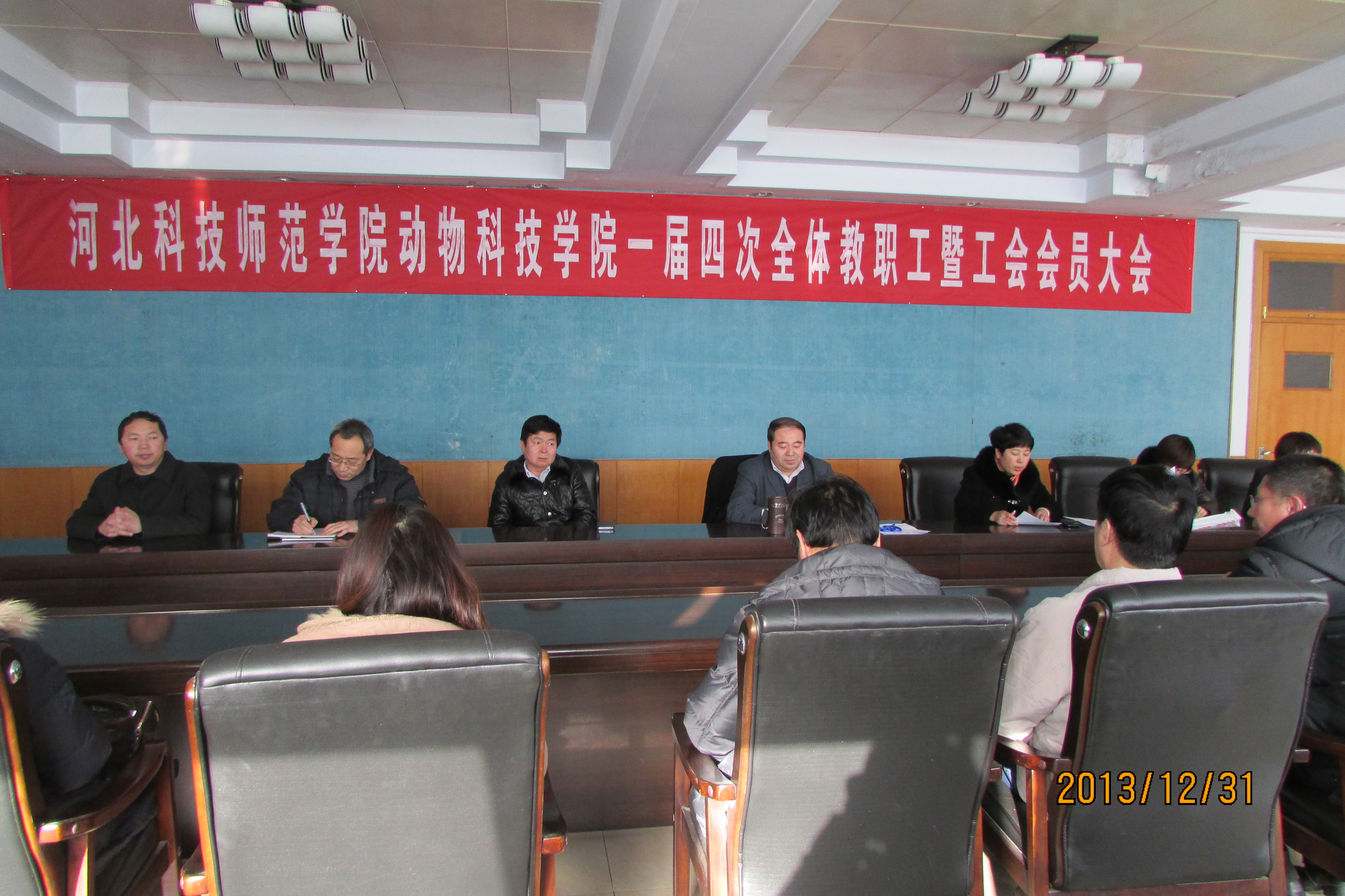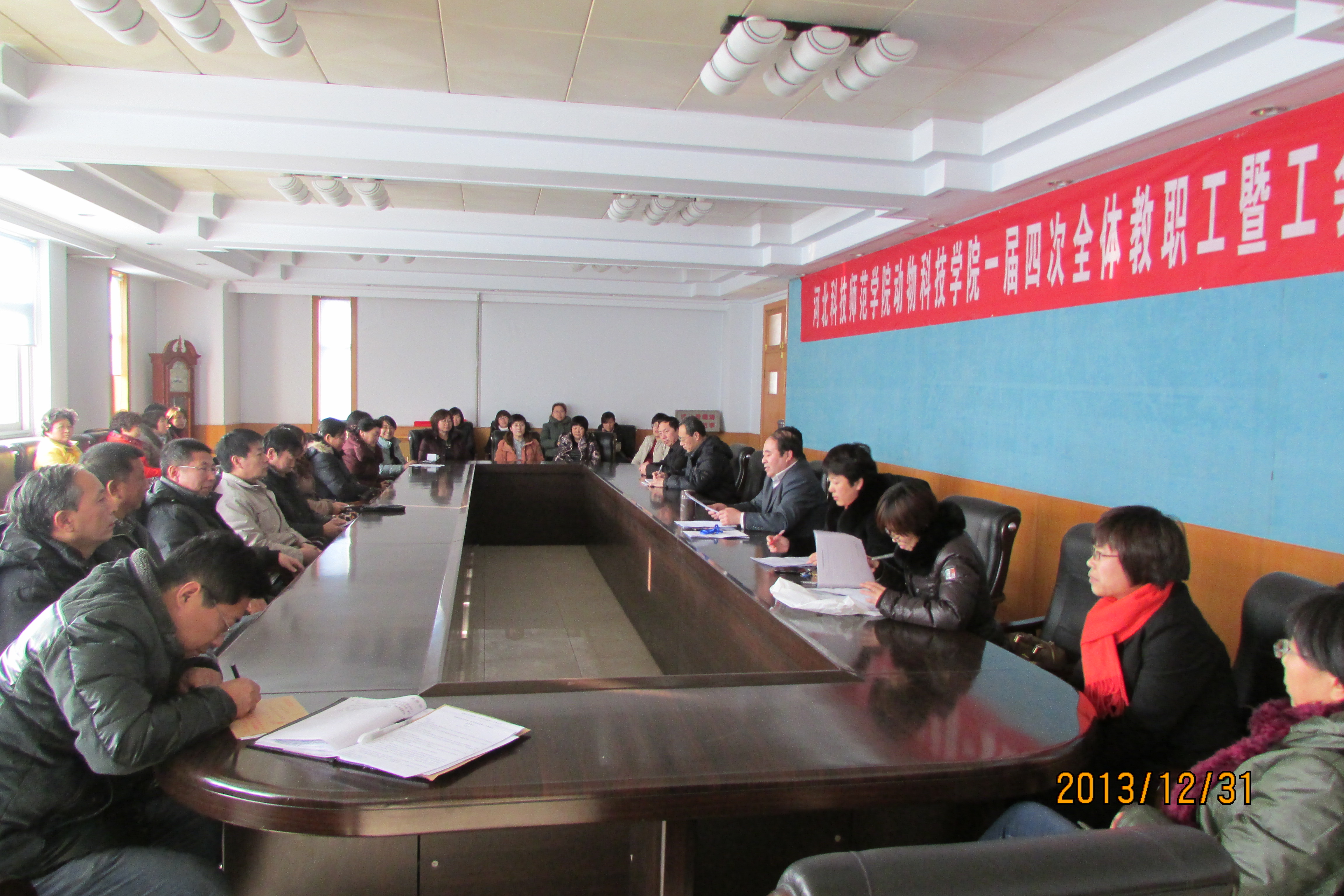 2013年12月31日下午,公司在主楼三楼会议室举行304永利集团官网入口第一届第四次全体教职工暨工会会员大会,参加本次大会的有党委常委、党委办公室、董事长办公室主任李佩国,公司领导班子成员和全体教师。