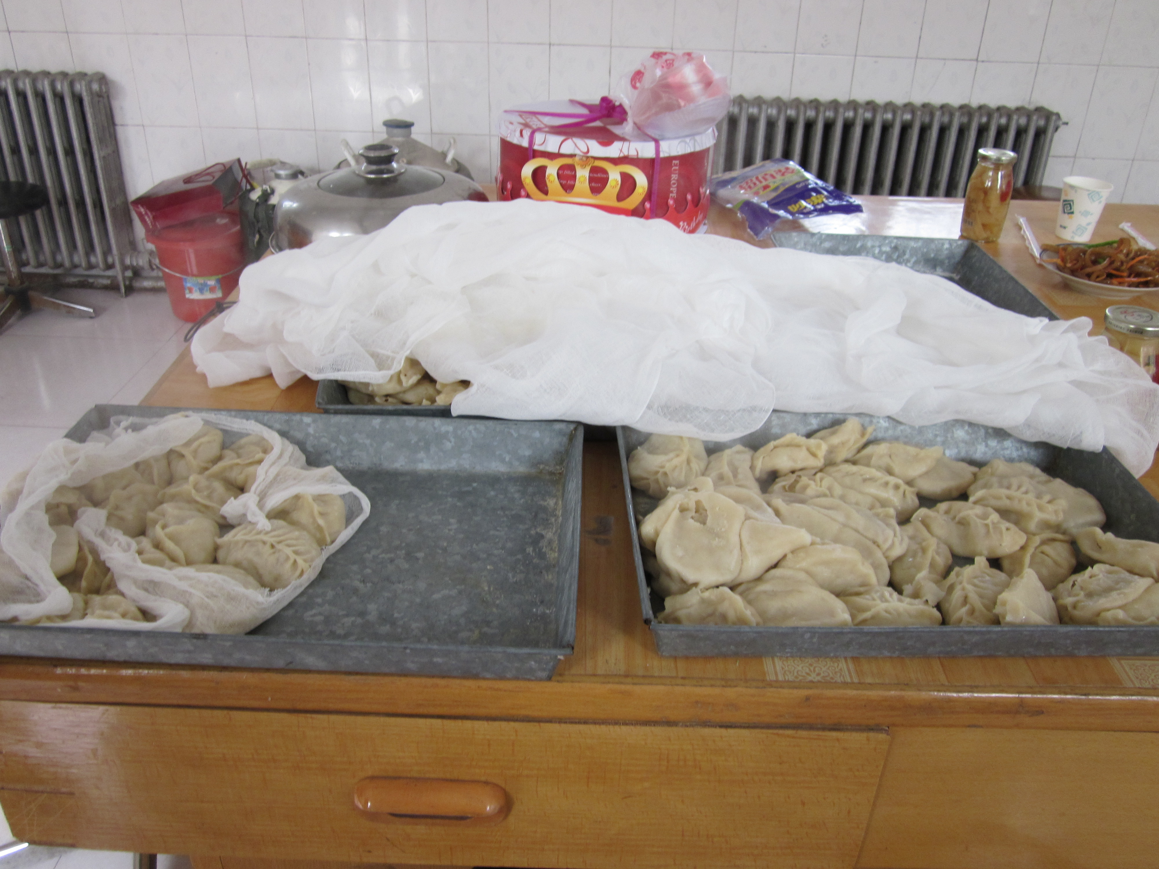 剁陷、擀皮、包饺子作为本次大赛的主食。有的教师买来新鲜的蔬菜,在牧场的实验室现场制作菜