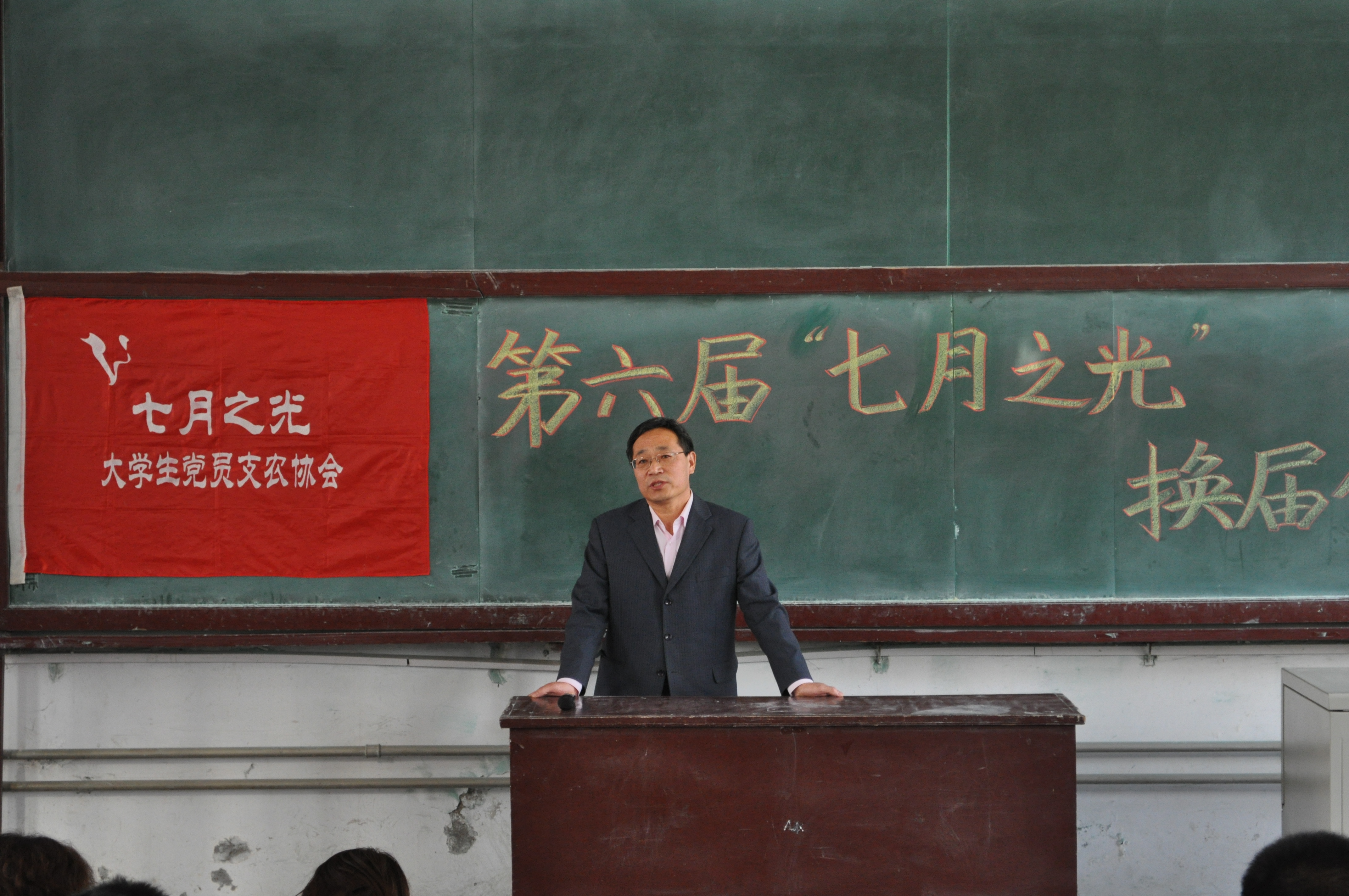 首先由“七月之光”老员工党员支农协会会长马增军老师对协会五年来的工作进行了全面总结,并提出了协会未来发展方向、具体任务和目标。接着第五届协会主席做了上一年度工作总结,新一届协会主席发表了就职演说。