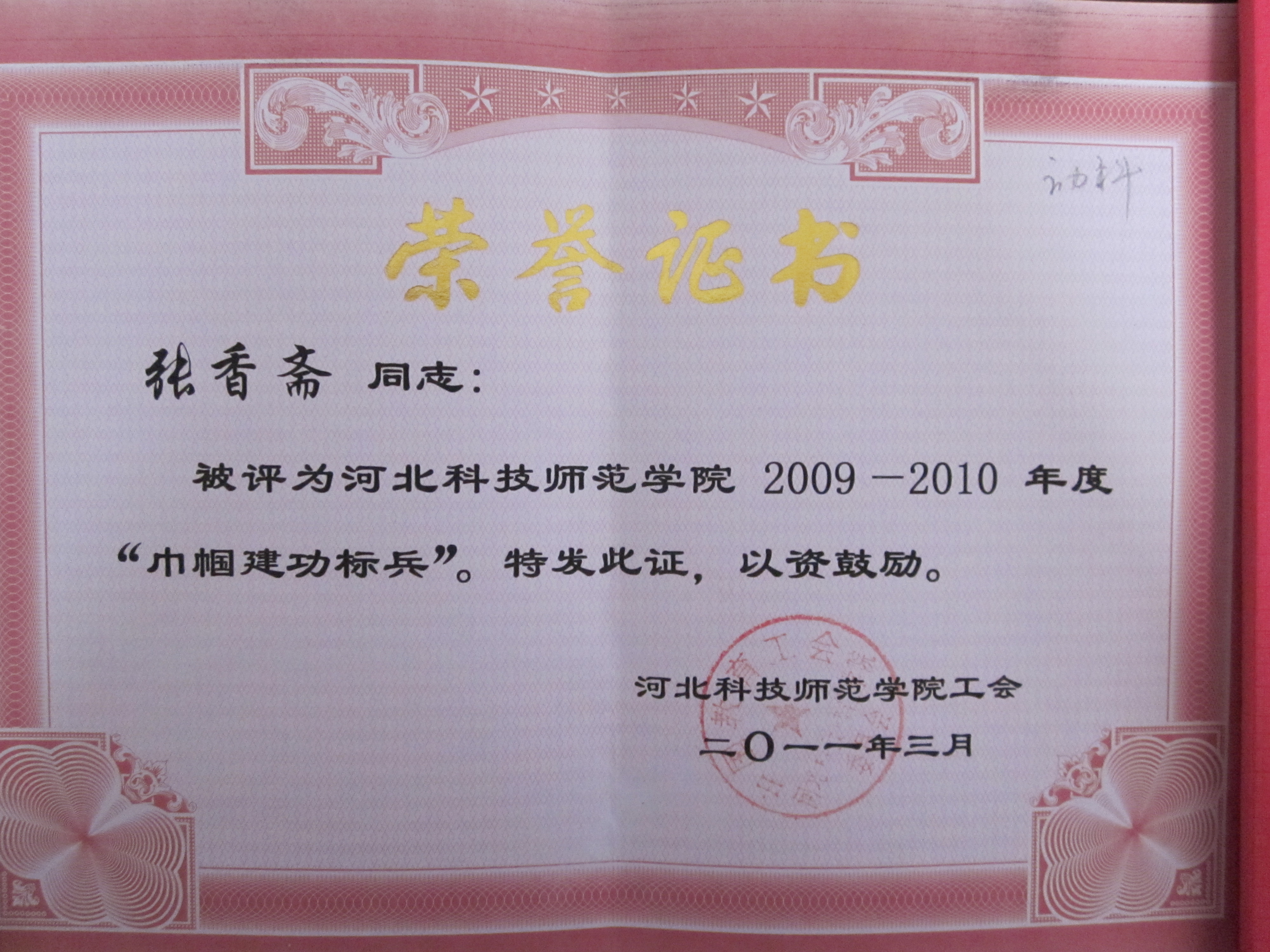 喜讯三:公司张香斋老师被评为304永利集团2009-2010年度“巾帼建功标兵”