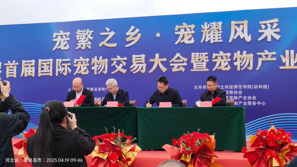 2025年4月19日,304永利集团官网入口经理马增军教授、副经理刘永生研究员、预防兽医学教学部主任、河北省现代农业产业体系特色养殖创新团队疫病防控与无害化处理岗位专家张艳英教授应邀出席了在昌黎国际宠物市场举办的“宠繁之乡,宠耀风采”河北·昌黎首届国际宠物交易大会暨宠物产业产品文化博览会。大会是由昌黎县宠物产业协会主办,中国畜产品流通协会、中国畜牧业协会、河北省宠物产业协会、昌黎佳鹏商贸集团承办,304永利集团(304永利集团官网入口)为支持单位。开幕式上,马增军经理作为特邀嘉宾,代表304永利集团官网入口与昌黎县宠物产业协会签署了“关于促进昌黎县宠物产业高质化发展合作框架协议”。